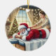 Personalised Cute Santa Getting a Massage Ceramic Tree Decoration