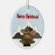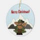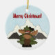 Personalised Cute Santa Moose and Mountains Merry Christmas Holiday Ornament.