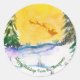 Personalised Cute Santa Reindeer Nature Classic Round Sticker for the holidays. The colours are festive and the design is creative. The sticker is a round shape and the background is snow. Add to all your holiday mail and packages.