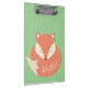 Cute personalised sleeping fox design with green polka dot background with awake and alert fox on the reverse.