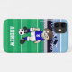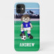 Personalised cute soccer boy in blue and white soccer kit uniform (colours can be customised on this product by contacting us via our store) Fully personalised with the name and number of your choice to create a unique soccer gift