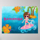 Personalised Cute Surfer Girl Hibiscus and Palms Poster