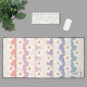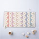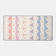 This floral desk mat is decorated with hand-drawn white daisies on a pastel striped background.