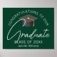 This modern dark green custom graduation party poster features your high school or college graduate for the class of 2025. Customise with your graduating year under the chic handwritten script and grey grad cap for trendy personalised graduation party decor.