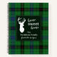 Cute home sweet home Christmas family favourite recipe notebook you can easily customise by clicking the "Personalise" button, Featuring deer silhouette and clan Davidson tartan in green check.