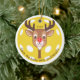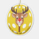 Personalised deck the halls with pickleballs ornament. The reindeer's head and neck are in the shape of a pickleball paddle, while its red nose resembles a red pickleball. Standard yellow pickleball background. Personalise with a year. Keep the curved text as shown or customise with your own wording. Add your team or league name as well as a player's name on the back of the ornament. It makes a perfect gift for pickleball enthusiasts. © Kimbellished, LLC