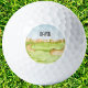 This hand-painted watercolor is of a golf course in the desert as a golf ball.