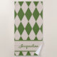 Personalised Diamond Chequered Green + Beige Beach Towel