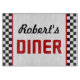 A vintage 50’s retro cutting board for anyone’s Diner aka kitchen with a red, black and white chequered board border ; Robert’s can be changed to any name or word like Mum’s, Dad’s, Pop’s, Joe’s