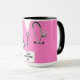 Creative doctor appreciation, birthday, graduation or holiday gift mug featuring pink hospital scrubs and funny Swiss Army knife. To personalise edit text to add name.