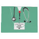 Creative medical school graduation congratulations gift bag for doctor featuring hospital scrubs and stethoscope. Edit text to add doctor, physician assistant or nurse's name and medial credentials.
