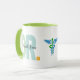 Personalised Doctor PhD Graduation Mug - Custom Two-Tone Dusty Green Coffee Cup with DR. & Family Name