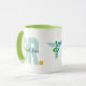 Personalised Doctor PhD Graduation Mug - Custom Two-Tone Dusty Green Coffee Cup with DR. & Family Name