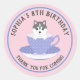 What is better than a kids tea party? A kids tea cup puppy party! These birthday thank you stickers feature an illustration of a Siberian Husky puppy with blue eyes in a tea cup. This light purple tea cup set has a white polka dot pattern, and the background is a light pink. Personalise these Kids Birthday Thank You Stickers with your own message and child’s name. The default message is “Sophia’s 8th Birthday” and “Thank You For Coming” and is in a grey font.