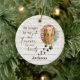 Honour the memory of your beloved dog with this heartfelt memorial ornament. Featuring a faux wood background, a delicate floral frame, and paw prints, this ornament allows you to insert your dog's photo and name. The touching phrase "No longer by my side, but forever in our hearts" is elegantly displayed, making this keepsake a comforting reminder of your pet’s place in your heart