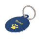 Personalised Dog paw print blue and yellow pet ID tag, with customisable yellow and blue lettering. Great for keeping track of your furry friend!
