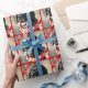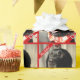Personalised Dog Photo Wrapping Paper Template for Christmas Gifts. Cheery Christmas red frame with a cute dog collar design. You can customise text.