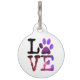 Personalised Dog Tag with Paw prints, Address and Phone Number purple cute paw print that says love.