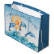 Gift giving was never so easy! This large glossy gift bag is easily personalised with your own messaging (currently reads: A SPECIAL GIFT FOR YOU) and features three frolicking dolphins in the ocean waves and a golden sun behind them.