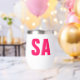 Personalised Double Shadow Monogram wine tumbler. These insulated tumblers are perfect for wedding, birthday, bridesmaids gift, bachelorette party favours, or just for everyday use! Customise with your monogram and your favourite colour combo!