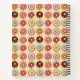 Deliciously cute multi-coloured illustrated doughnut pattern on soft pastel polka dot background.