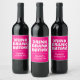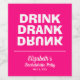 Personalised wine bottle labels feature the bachelorette's name and the words Drink Drank and the word Drunk upside down. Fun to serve at your bachelorette party or give as party favours. We show a hot pink background, but you can change it to any colour. MATCHING items in our store.