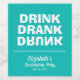 Personalised wine bottle labels feature the bachelorette's name and the words Drink Drank and the word Drunk upside down. Fun to serve at your bachelorette party or give as party favours. We show a turquoise background, but you can change it to any colour. MATCHING items in our store.