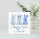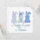 Three cute bunnies personalised "Happy Easter" . Three bunnies in polka dot, plaid and floral in blue and white will make it great for Easter gift.