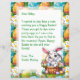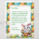Add your child's name to this customisable letter from the Easter Bunny. Cute vintage Easter bunny in a basket with a cute Easter Eggs background. Back side of this letter is a colouring page for your child.