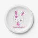 Personalised Easter paper plates with cute pink bunny and customisable text