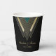 Celebrate the bride and groom with a wonderfully sophisticated Art Deco geometric design in black, gold, charcoal and teal. The design is symmetrical and streamlined with Gatsby elegance. A text template includes lines to personalise with the bride and groom's names and wedding or party date.You can personalise this template with any text you desire.