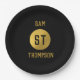 Personalised Elegant Black & Gold Modern Monogram Paper Plate
