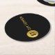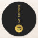 Personalised Elegant Black & Gold Modern Monogram Round Paper Coaster