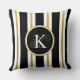 Personalised Elegant Black & Gold Stripes Monogram Cushion