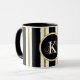 Personalised Elegant Black & Gold Stripes Monogram Mug