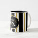 Personalised Elegant Black & Gold Stripes Monogram Two-Tone Coffee Mug