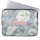 Personalised Elegant Blue and Cream Peony Floral Laptop Sleeve