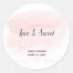 Announce your special day with this elegant blush watercolor sticker label. Featuring a soft pink brushstroke background and modern calligraphy, this stylish design is perfect for romantic weddings. Customise with your names and details. Ideal for elegant, minimalist, and contemporary wedding themes.