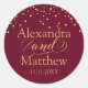 Personalised Elegant Burgundy Gold Wedding Classic Round Sticker