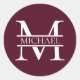Personalised Elegant Burgundy Monogram and Name Classic Round Sticker