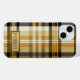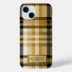 Personalised iPhone case in elegant classic tan and taupe plaid design with monogram