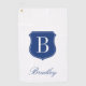 Personalised elegant name monogram blue and white golf towel