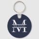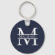 Personalised Elegant Navy Blue Monogram and Name Key Ring