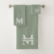 Personalised Elegant Sage Green Monogram & Name Bath Towel Set