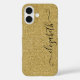Personalise this gold glitter iPhone 16 case with your name in an elegant script font. Available in all current sizes of iPhone and Samsung cases.