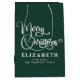 Elevate your holiday gift-giving with our Personalised Elegant Script Merry Christmas Custom Medium Gift Bag in a luxurious emerald green. This classic Christmas bag, personalised with your family name, adds a touch of elegance and sophistication to your presents, making them truly stand out.