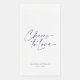 Celebrate love with this elegant wedding paper guest towel featuring the phrase "Cheers to Love" in a stylish script font. The white background with dark blue lettering creates a timeless and sophisticated look. Personalised with the couple’s names and their special date, this guest towel adds a romantic and refined touch to any wedding reception, engagement party, or anniversary celebration. Perfect for adding elegance to your event while offering a practical and stylish detail for your guests.