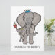 A sweet illustration of an elephant and baby. The baby is holding up a cupcake covered in sprinkles and they are both wearing crowns.