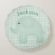 Personalised Elephant Green Plaid Gingham Nursery Round Cushion