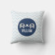 This pillow features a blue chevron pattern with a navy circle and grey elephants. The sweet, modern elephants share a heart with a place for you to personalise this pillow with a name. You can easily change the name, font style, and background colour to make the perfect pillow for a sweet baby.